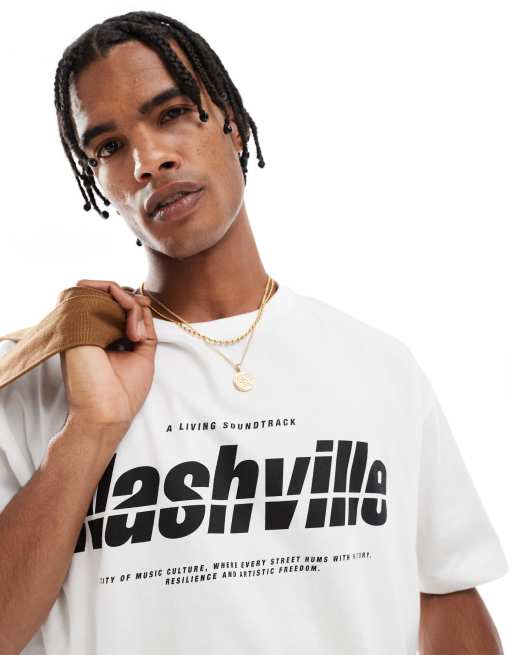 ASOS DESIGN cropped oversized t-shirt with city graphic in white