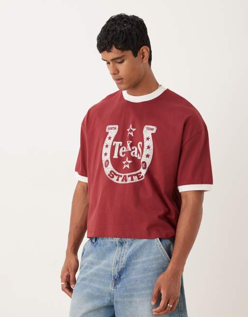 ASOS DESIGN cropped oversized t-shirt with horse shoe graphic in rusty red