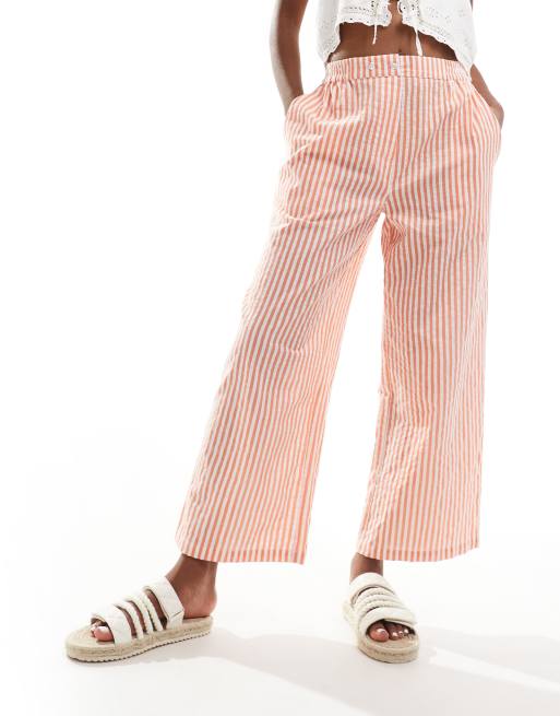 ASOS DESIGN cropped pull on trousers with tab waistband in orange stripe