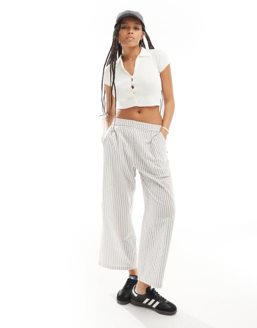 ASOS DESIGN cropped pull on trousers with tab waistband in orange stripe