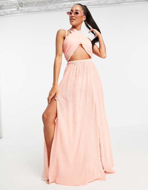 ASOS DESIGN cross neck halter beach dress in apricot