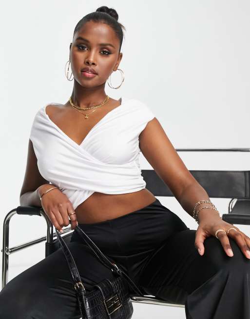 ASOS DESIGN cross over bardot top with short sleeve in white