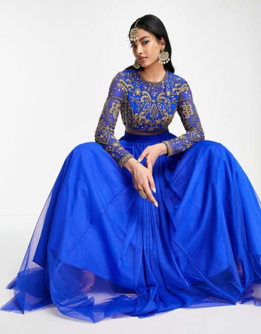 ASOS DESIGN crystal lehenga set in blue- MBLUE