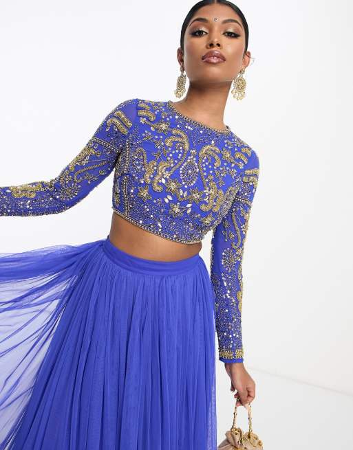 ASOS DESIGN crystal placement lehenga crop top in blue