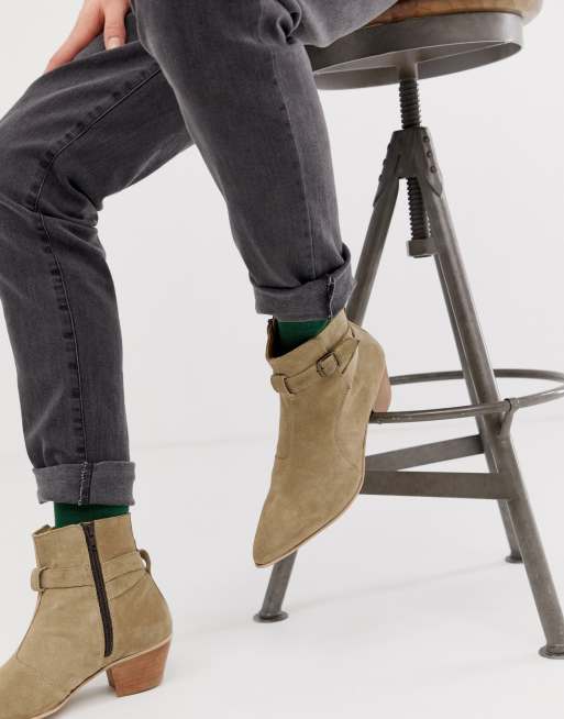 ASOS DESIGN cuban heel western chelsea boots in stone suede