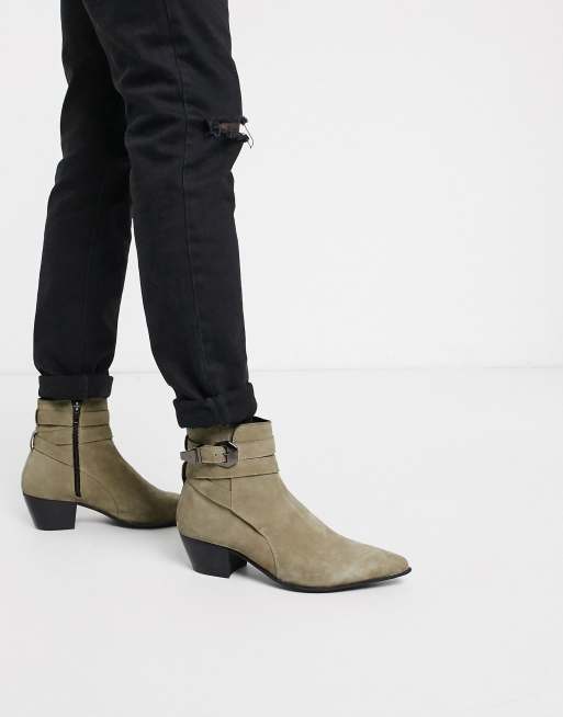 ASOS DESIGN cuban heel western chelsea boots in stone suede