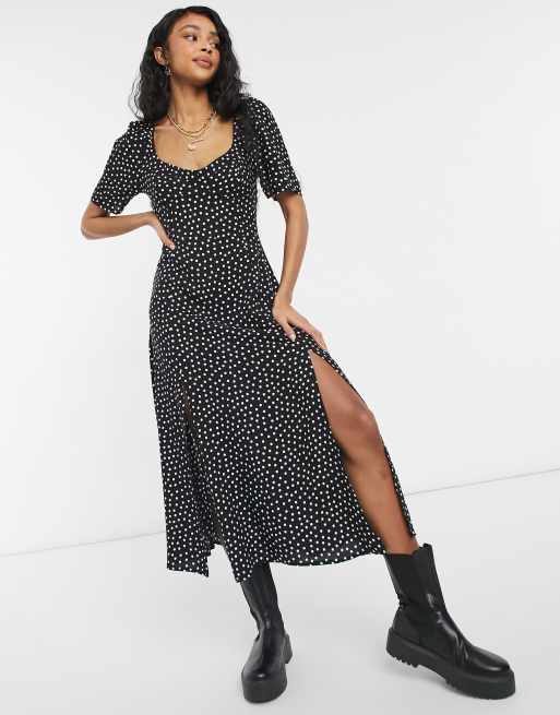 ASOS DESIGN cupped maxi dress with splits in spot print