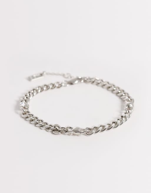 ASOS DESIGN curb chain bracelet with stationed crystal stones in silver