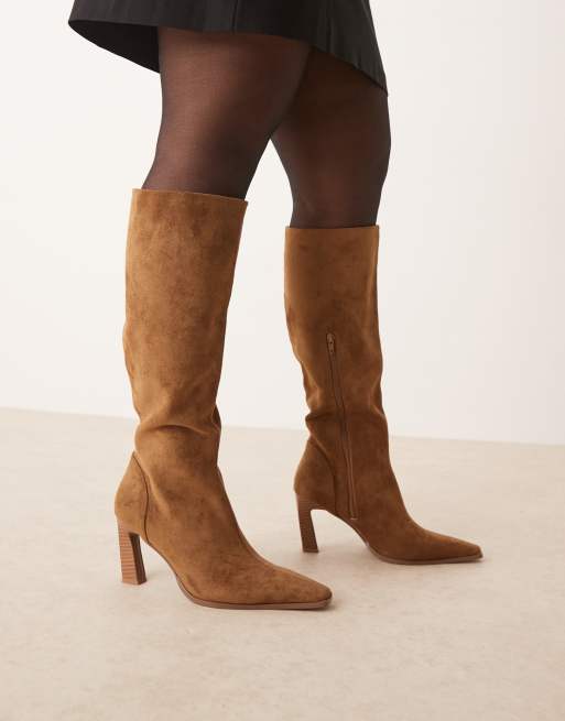 ASOS DESIGN Curve Clara chisel toe knee boots in sand suedette