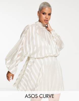 ASOS DESIGN Curve high neck mini dress with satin stripe detail