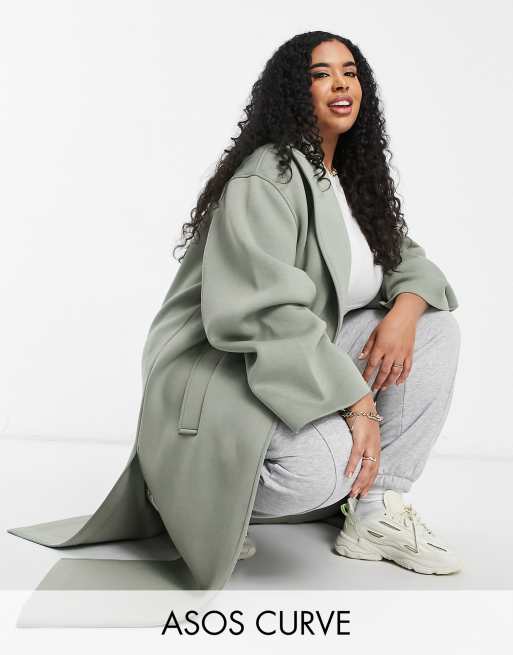 ASOS DESIGN Curve scuba-style fabric chuck on coat in sage