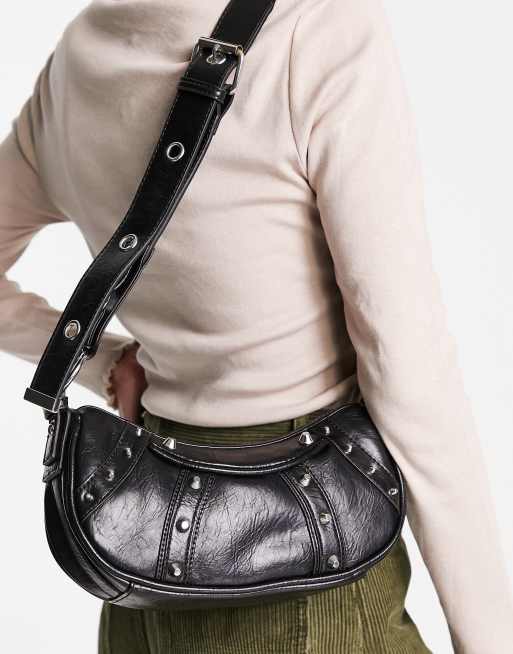 ASOS DESIGN curved crossbody bag with studding in black