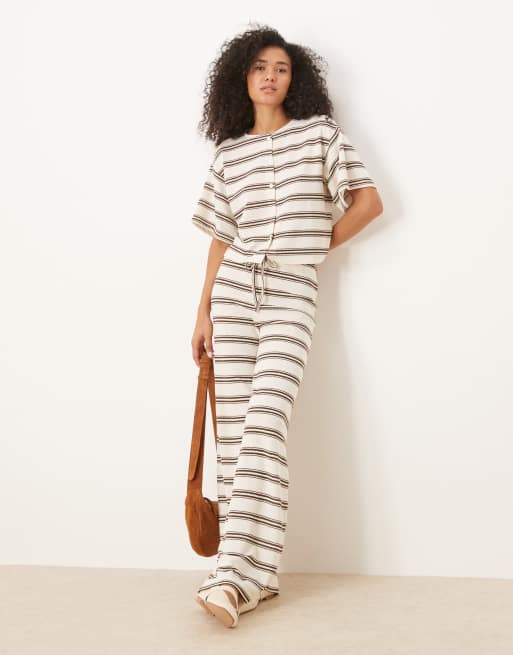 ASOS DESIGN cut and sew stripe mid rise wide leg trousers in ivory