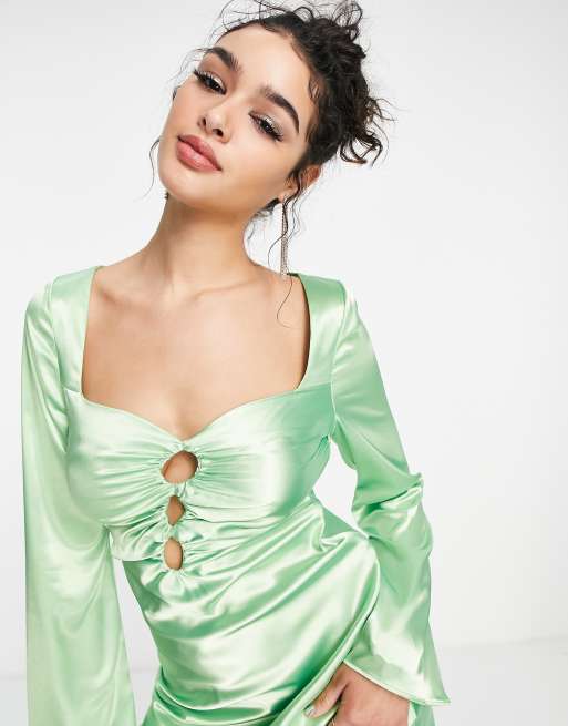 ASOS DESIGN cut out satin midi tea dress in light green