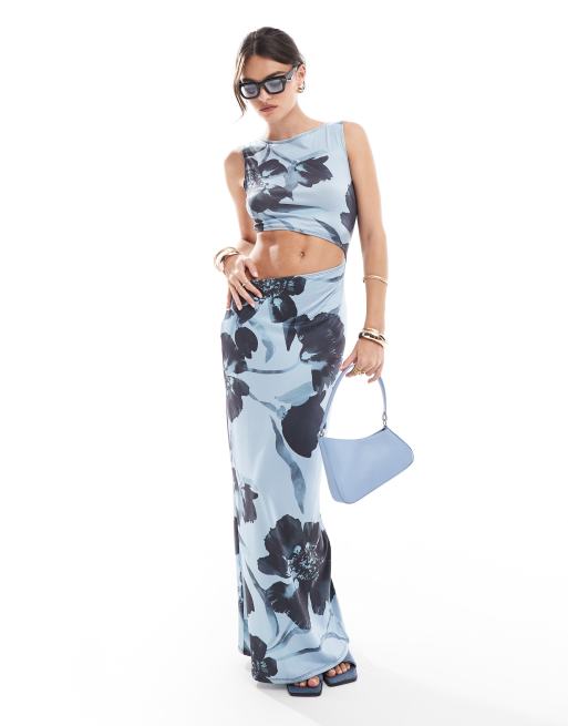 ASOS DESIGN cutout sleeveless midi dress in blue floral print