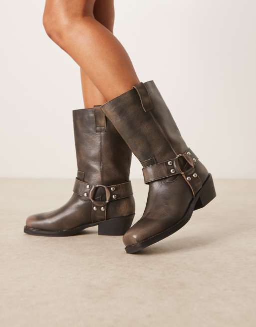 ASOS DESIGN Cyrus leather harness knee boot in aged grey