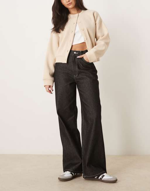 ASOS DESIGN dad jean with contrast stitching in black wash