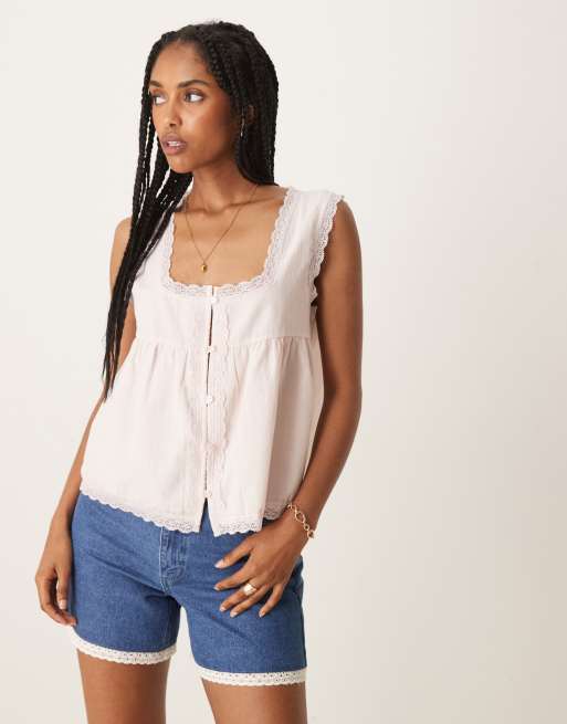 ASOS DESIGN dad short co-ord with broderie trim in mid blue