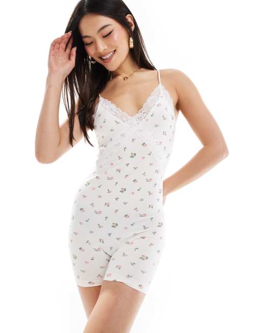 ASOS DESIGN Dakota unitard with lace trim in ditsy print