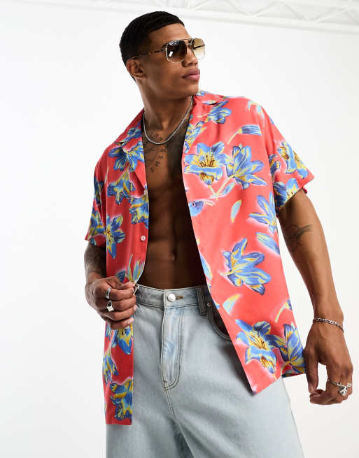 ASOS DESIGN deep revere shirt in Hawaiian floral print