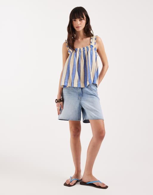 ASOS DESIGN Delilah stripe beach short & cami top in blue stripe