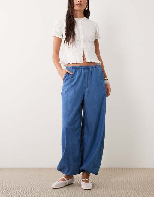 ASOS DESIGN denim balloon trouser in clean midwash