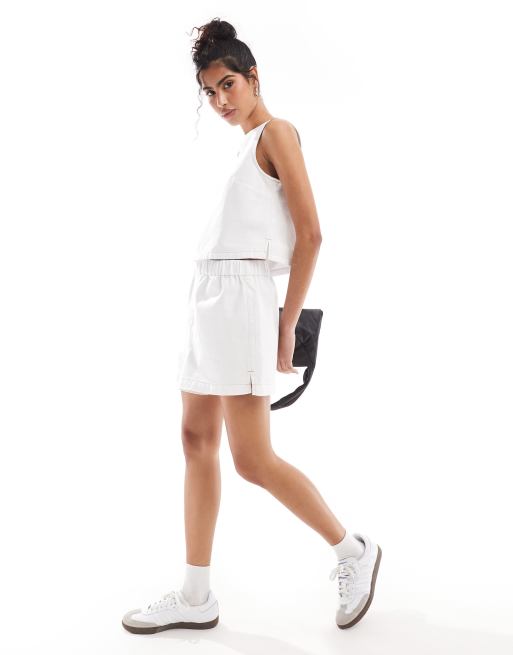 ASOS DESIGN denim boxer short in white