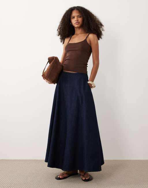 ASOS DESIGN denim circle hem midi skirt in rinse wash