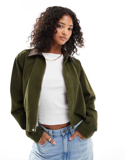 ASOS DESIGN denim contrast collar jacket in khaki