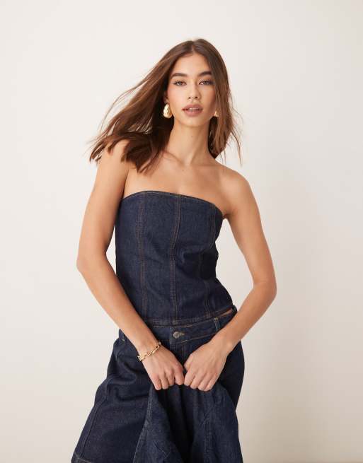 ASOS DESIGN denim corset top in indigo