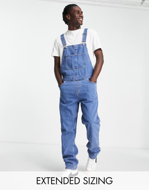 ASOS DESIGN denim dungarees in mid wash blue
