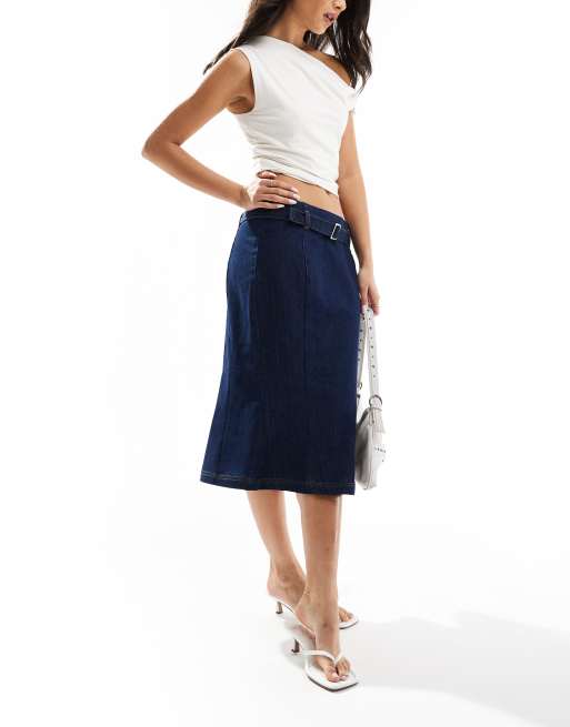 ASOS DESIGN denim fitted skirt with mini belt in indigo
