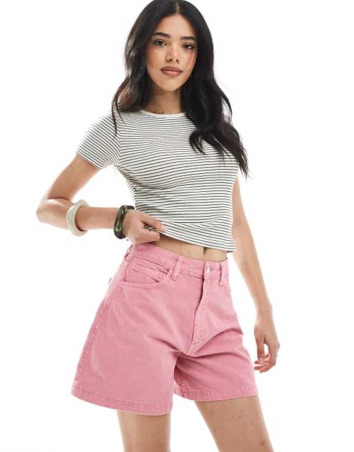 ASOS DESIGN denim longline A line short in pink