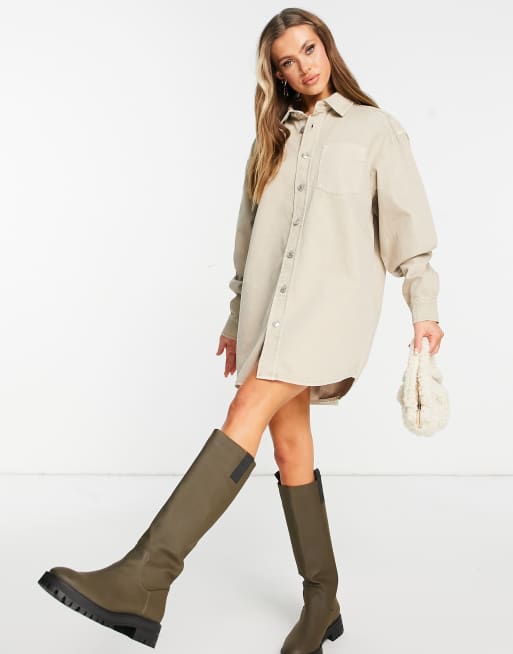 ASOS DESIGN denim oversized shirt dress in beige