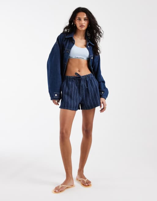 ASOS DESIGN denim pull on short in stripe