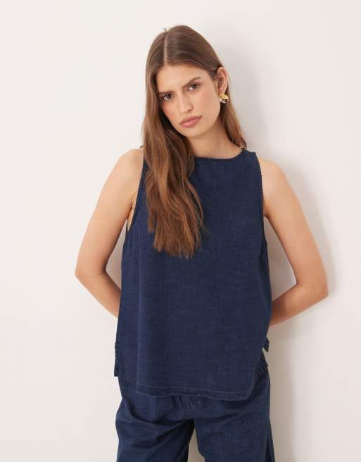 ASOS DESIGN denim tie back shell top co-ord in inky wash