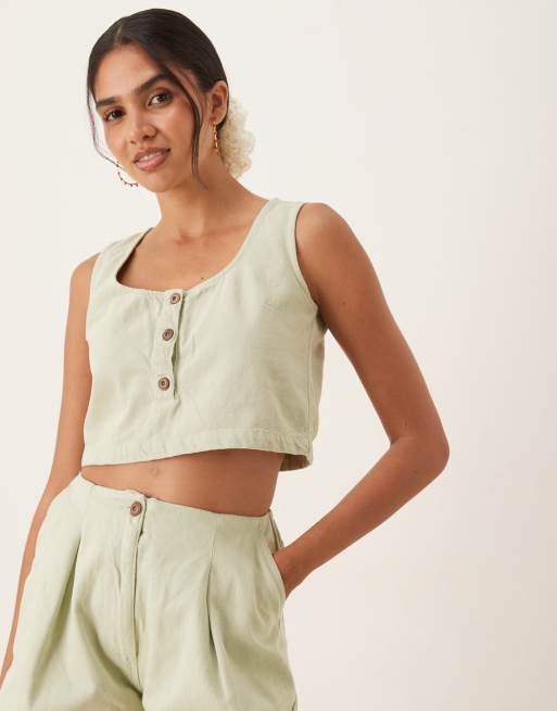 ASOS DESIGN denim vest top with button front in pistachio co-ord