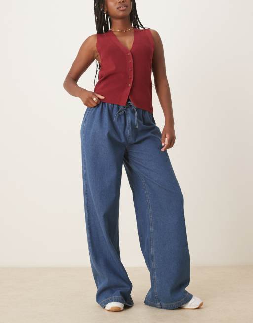 ASOS DESIGN denim wide leg jogger jean in mid blue