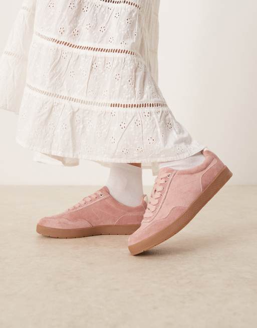 ASOS DESIGN Deuce lace up trainers in pink suedette