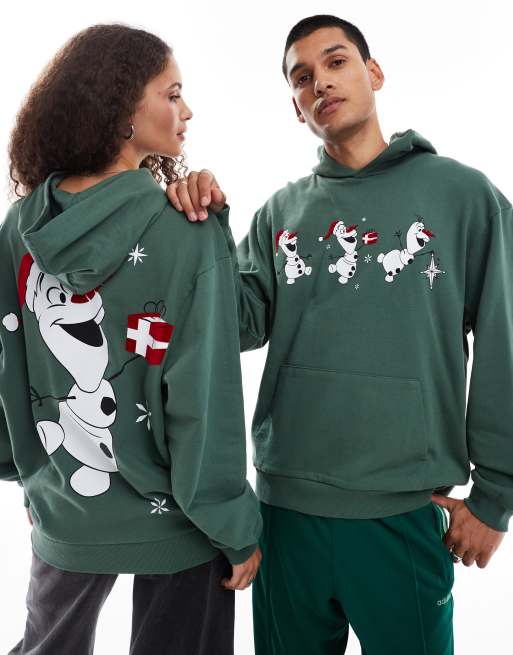 ASOS DESIGN Disney Christmas oversized hoodie with Frozen Olaf prints in green