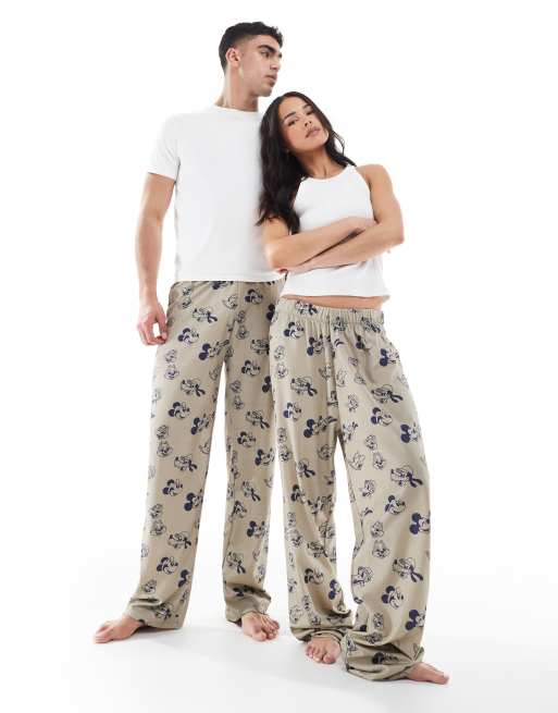 ASOS DESIGN Disney Mickey & Friend's printed lounge bottoms in stone - BEIGE