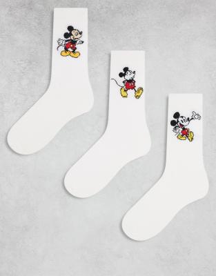 ASOS DESIGN Disney Mickey Mouse 3 pack socks in white - CREAM
