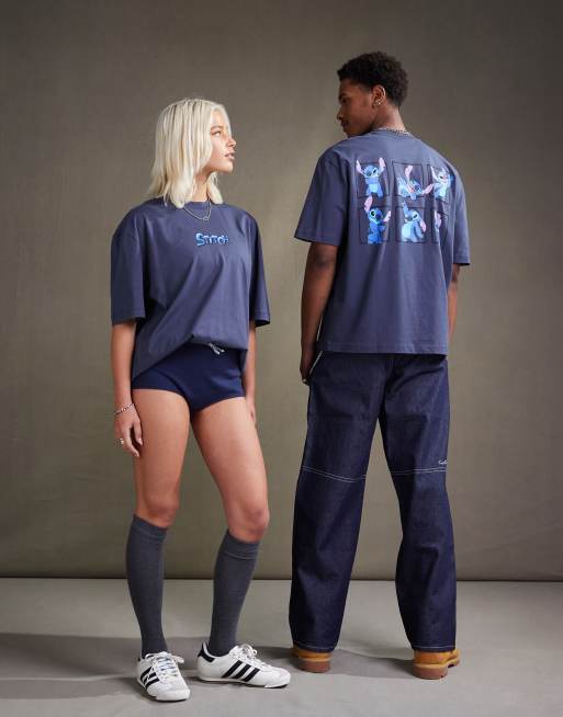 ASOS DESIGN Disney oversized unisex t-shirt in grey with multiple Stitch prints