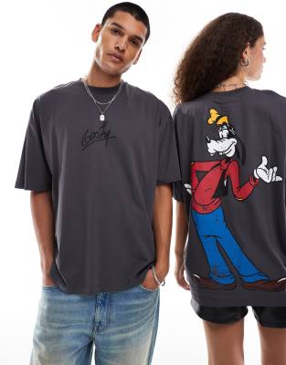 ASOS DESIGN Disney oversized unisex tee in grey with Goofy graphic prints