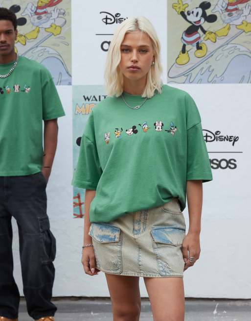 ASOS DESIGN Disney unisex oversized t-shirt with Mickey Mouse & Friends prints in washed green