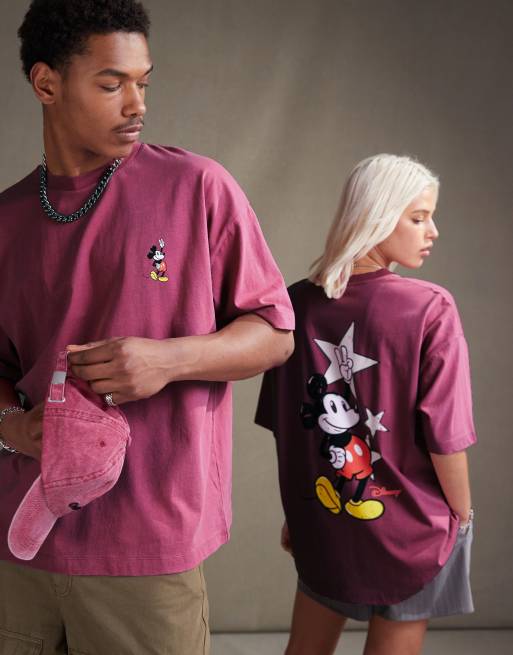 ASOS DESIGN Disney unisex oversized t-shirt with Mickey Mouse prints in washed pink