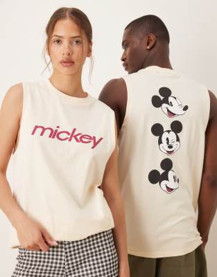 ASOS DESIGN Disney unisex oversized vest with Mickey Mouse prints in butter yellow