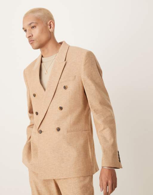 ASOS DESIGN double breasted linen blend regular suit jacket in camel