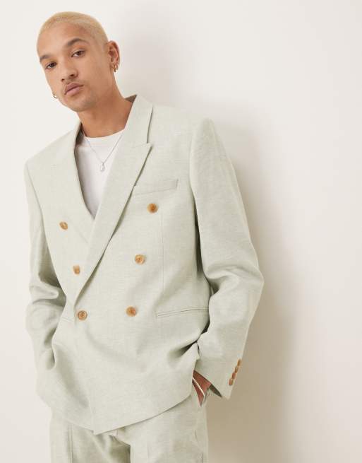 ASOS DESIGN double breasted linen blend regular suit jacket in mint green