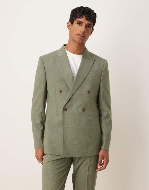 ASOS DESIGN double breasted regular suit jacket in green melange with topstitch
